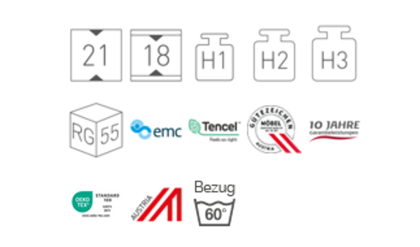 - Das hohe Raumgewicht gewährleistet gleichbleibenden Liege-komfort über viele Jahre.