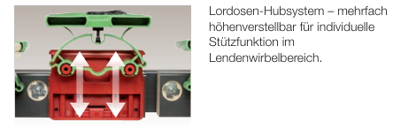 ✔ Lordosen-Hubsystem – mehrfach höhenverstellbar