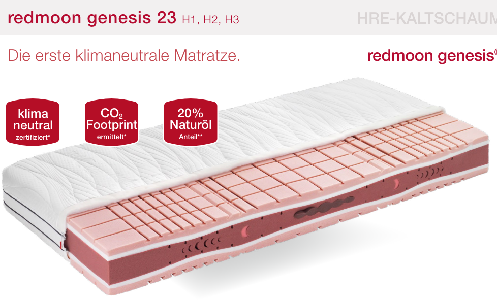 redmoon genesis® ist die ehrliche, glaubwürdige und transparente Verbindung von Ökologie und Ökonomie. Sie ist keine Naturmatratze, sondern definiert diesen Begriff völlig neu. Umweltschonend, modern und ehrlich – ohne Greenwashing- Versprechen bzw. einer vorgespielten „Öko-Romantik“.