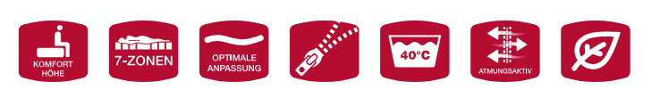 - 7 Zonen-HRE-Systemkern für ideale Unterstützung des gesamten Bewegungsapparates und perfekte Lagerung – für Seiten-, Bauch- und Rückenschläfer
